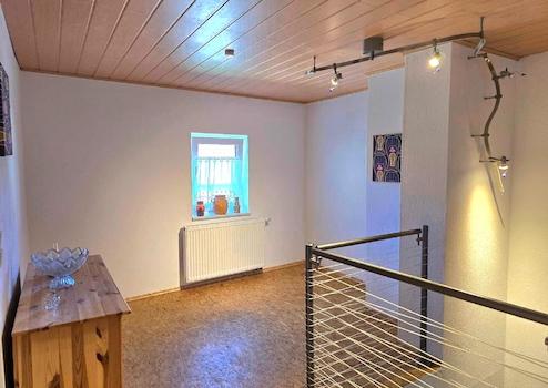 Die Immobilie verfügt über ein Badezimmer mit einer Badewanne, einer Dusche und einem Fenster, welches für ausreichend Licht und Belüftung sorgt. Zudem ist eine Einbauküche bereits vorhanden. Die Bodenbeläge in der Wohnung sind vielseitig und bestehen aus Fliesen, Laminat und Teppichboden. Die Qualität der Ausstattung wird als normal eingestuft, was bedeutet, dass sie den notwendigen Komfort und Funktionalität bietet, aber keine luxuriösen Extras beinhaltet. Insgesamt präsentiert sich die Immobilie damit als solide und gemütlich. Im Angebot ist ein zweiter Bauplatz in 30 m Entfernung enthalten, welches eingezäunt und aktuell als Garten genutzt wird.