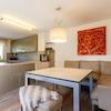 Eine Tür führt von dort in die moderne und hochwertige Wohnküche. Von hieraus haben Sie eine gute Sicht sowohl in den Innenhof des Hauses als auch auf die Verkehrsberuhigte Straße. Eine weitere Tür der Diele führt Sie in ein als Garderobe genutztes Durchgangszimmer und weiter zum lichtdurchfluteten Wohnzimmer mit Sicht auf die Terrasse und den detailreichen Garten. Von hier gelangen Sie über einen sich anschließenden Flur zu einer weiteren Küche und einem WC des zweiten Hauses (Anbau). Die dort befindliche Diele führt in das Untergeschoss, das Obergeschoss oder über die zweite Haustür wieder auf den gepflasterten Vorplatz.