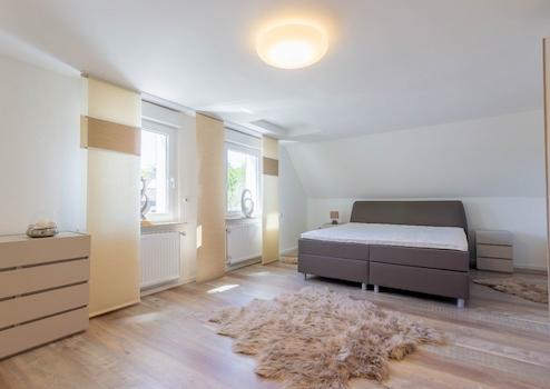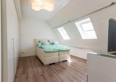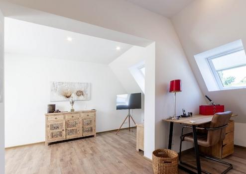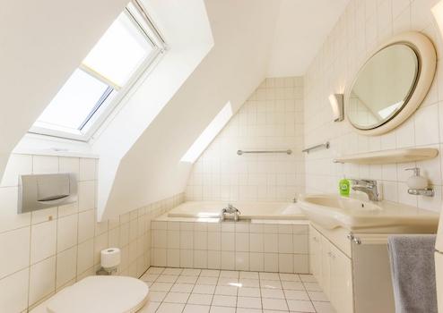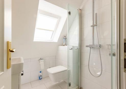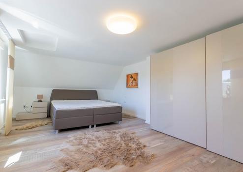 Das Obergeschoss, welches Sie über beide Dielen erreichen, verfügt über drei Schlafzimmer, ein geräumiges Durchgangszimmer, das als Kinder- oder Arbeitszimmer genutzt werden kann, einem Elternbadezimmer mit Badewanne, einem weiteren modernen Badezimmer mit Dusche samt Fußbodenheizung und einem Gäste-WC.