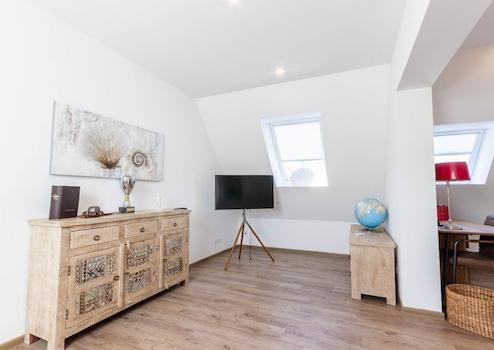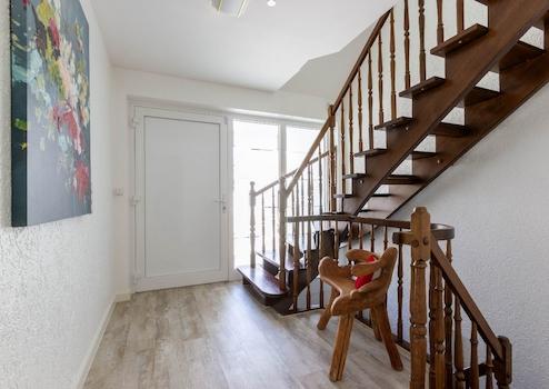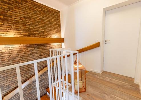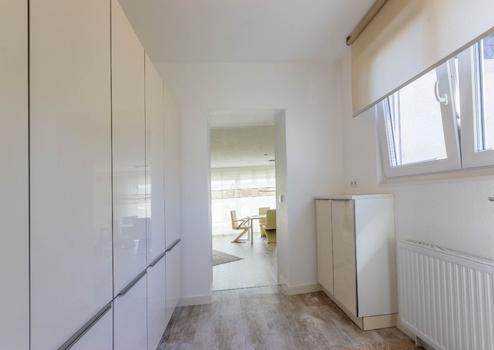 Die hochwertigen Materialien, die Detailauswahl und die sorgfältigen, handwerklichen Ausführungen der im Laufe der Jahre durchgeführten Um- und Ausbauten erzeugen ein harmonisches Gesamtbild. Beim Betreten der ursprünglichen Doppelhaushälfte gelangen Sie in den Dielenbereich mit Treppenhaus und Gäste-WC.