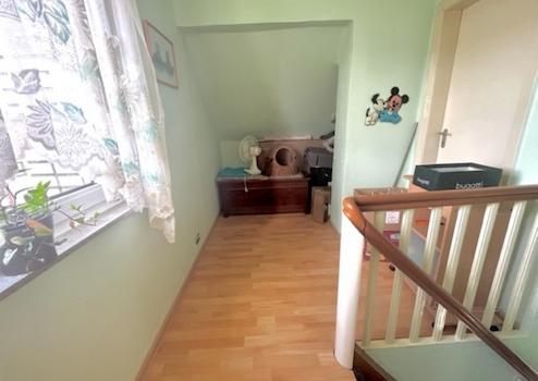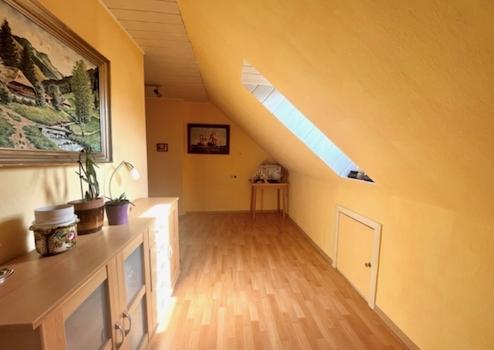 Die Wohnfläche beträgt 107 m² und erstreckt sich inkl. des ausgebauten Dachbodens auf 3 Ebenen und 4 Zimmer (3 Schlafzimmer). Im Erdgeschoss steht das lichtdurchflutete Wohnzimmer, eine große Küche sowie ein modernes Duschabd mit Fenster aus 2013 zur Verfügung. Vom Wohnzimmer aus gelangt man auf die neu überdachte, dreiseitig geschlossene Terrasse. Das Obergeschoss beherbergt 2 Schlafzimmer und ein Wannenbad mit Fenster. Über eine weitere Treppe gelangt man ins ausgebaute Dachgeschoss, in dem ein 26,5 m² großes Schlafzimmer zur Verfügung steht, welches bei Bedarf auch in zwei Zimmer rückbaubar wäre. Im Vollkeller des Hauses steht umfangreicher Stauraumzur Verfügung sowie die Waschküche. Der Keller ist sowohl vom Haus, als auch vom Garten aus erreichbar. Der große Kellerraum ist beheizbar und verfügt über Tageslicht. Er kann als Hobby- aber auch als Gästezimmer oder Homeoffice genutzt werden, zumal sich im Keller ein zusätzliches WC mit Waschbecken zur Verfügung steht.