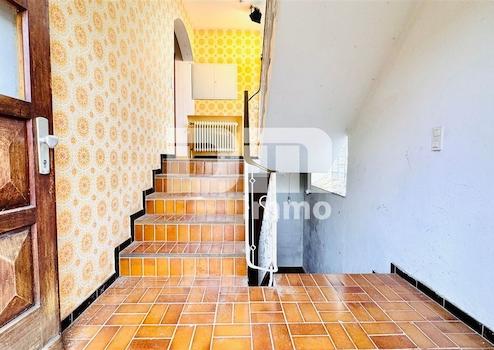 Über den massiven Treppenaufgang gelangen Sie in das Obergeschoss der Immobilie.