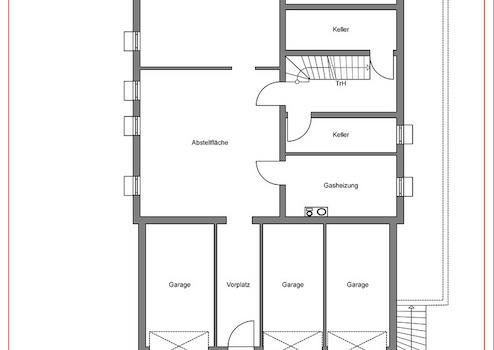 Großzügige Lager- und Abstellflächen, Heizung, drei ins Gebäude integrierte PKW-Garagen.