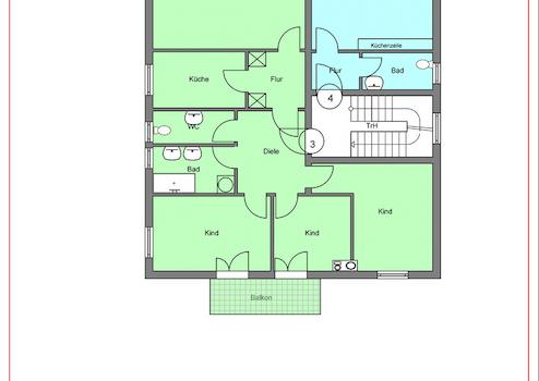 4 Zimmer-Wohnung mit Tageslichtbad und Gäste-WC sowie Balkon