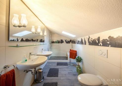 Ein ganz besonderer Schatz ist dieses imposante Haus in Garmisch-Partenkirchen. Absolut ruhig und trotzdem zentrumsnah kann dies der Treffpunkt der großen Familie sein. Am Fuße des Kramers haben Sie einen traumhaften Blick ins Wettersteingebirge mit Zugspitze und Alpspitze, dieser ist unverbaubar. Das Haus verfügt über sämtliche Annehmlichkeiten, die man sich wünschen kann. Viele Rückzugsorte und Schlafzimmer auf drei Ebenen und Sauna. Da das Haus am Hang gebaut ist, haben Sie zwei separate Eingänge auf zwei Ebenen. Treffpunkt schlechthin ist für die Familie der große Wohn-/Essbereich mit offener Küche auf insgesamt