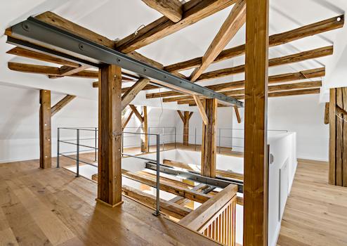 Das besondere Highlight erwartet Sie in der obersten Etage: eine eindrucksvolle Galerie mit offener Decke, die das Wohngefühl auf ein neues Niveau hebt. Hier können Sie eine ruhige Arbeitsecke einrichten oder einfach den besonderen Charme dieses einzigartigen Raumes genießen.