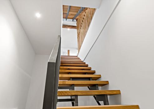 - Exklusiver Eingangsbereich im 1. OG mit moderner Holztreppe