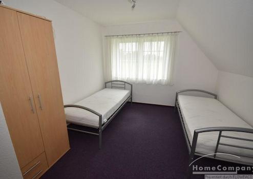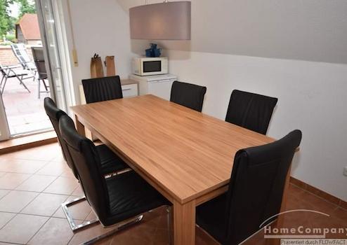 Diese Dachgeschosswohnung überzeugt durch die ruhige Alleinlage. Das gemütliche Wohnzimmer ist mit einer bequemen Couch sowie einem TV-Gerät ausgestattet. Das Schlafzimmer verfügt über ein großzügiges Doppelbett und einen großen Kleiderschrank. Ein weiteres Schlafzimmer ist mit zwei Einzelbetten eingerichtet und eignet sich ideal als Gäste - oder Kinderzimmer. Das Badezimmer überzeugt mit einer Kombination aus Dusche und Badewanne. Die vollausgestattete Küche bietet einen Essbereich für vier Personen. Besonders hervorzuheben ist die große Terrasse, die direkt von der Küche aus zugänglich ist. Von hier aus hat man einen wunderbaren Blick über die Wiesen. Ein Stellplatz vor dem Haus rundet das Angebot ab.