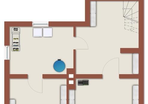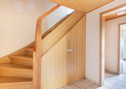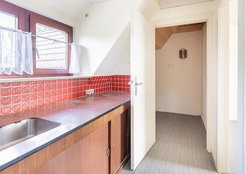 Des Weiteren teilt sich das Erdgeschoss auf ein geräumigen Eingangsbereich, in das Vollbad mit separater Dusche (innen liegend), eine praktische Garderobenecke sowie das großzügig geschnittene Wohnzimmer und in die geräumige Küche. Diese ist mit einer funktionellen und einfachen Einbauküche ausgestattet und bietet Ihnen Platz für eine kleine Frühstücksecke.