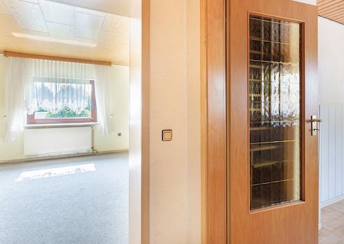Lebensmittelpunkt im Erdgeschoss stellt das nachträglich angebaute Kaminzimmer (1978) dar, welches jedoch nicht zur Wohnfläche, sondern nur als Nutzfläche angerechnet wird. Dieses wurde ursprünglich als überdachte Terrasse/ Veranda erbaut und genehmigt, jedoch liegen den Erben keine Unterlagen zu einem weiteren Umbau vor. Daher wird dieses Kaminzimmer nur zu 50 % - wie eine überdachte Terrasse - angerechnet.