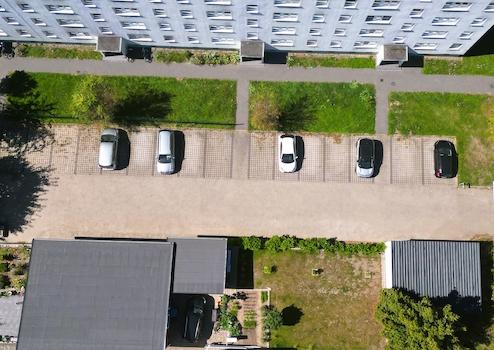 auf einer mit Schranke gesicherten Parkplatzanlage