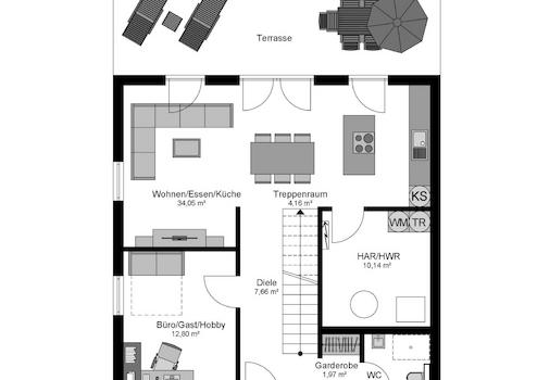 Die Ausbaustufe "FastFertigPlus" ermöglicht es Ihnen, aktiv am Bau Ihres Hauses mitzuwirken, während die haustechnischen Gewerke von Fachbetrieben übernommen werden. In dieser Ausbaustufe sind alle notwendigen Sanitärinstallationen bereits enthalten, wodurch Sie bei der Erstellung Ihres Hauses Zeit und Kosten sparen können. In einem umfassenden Beratungsgespräch ermitteln wir Ihre individuellen Wünsche und Vorstellungen, um Ihnen eine maßgeschneiderte Planung garantieren zu können. Nach Ihrer Zufriedenheit mit dem Grundriss beginnt die Umsetzung Ihres neuen Zuhauses, welches Ihnen schlüsselfertig oder in der von Ihnen gewünschten Ausbaustufe übergeben wird.