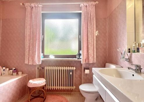 Das Haus ist vollständig unterkellert und verfügt über entsprechend viel Stauraum, einen Hobbyraum, zwei Gästezimmer und ein Tageslichtbad mit WC.