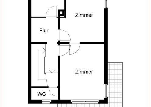 Momentan befindet sich im 1. Obergeschoss eine 2 Zimmer-Wohnung mit Terrasse,