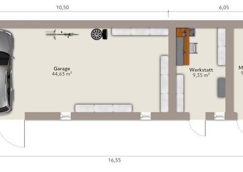 - Nebengebäude mit großer Garage, Werkstatt und Geräteraum