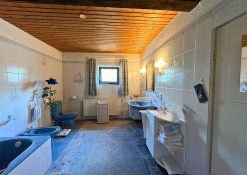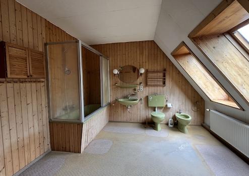 - 2 Badezimmer aus den Jahren 1980 und 1990, mit Dusche, Badewanne, WC und Waschbecken