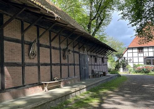 Ein echtes Highlight der Immobilie ist das ehemalige Stallgebäude, das zu 1/3 zu Wohnzwecken ausgebaut wurde. Im restlichen Gebäude befindet sich ein alter Pferdestall. Es steht Ihnen allein zur Verfügung und eröffnet auf zwei Etagen vielfältige Nutzungsmöglichkeiten. Im Erdgeschoss lässt sich etwa ein Gästehaus oder ein barrierefreier Wohnbereich realisieren, während das Dachgeschoss sich hervorragend für ein Atelier, ein Homeoffice oder als Rückzugsort für heranwachsende Kinder eignet.