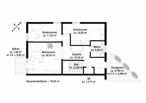 Ein besonderes Highlight dieser Wohnung ist der abgegrenzte Dachgarten, der sich auf der ruhigen, von der Straße abgewandten Seite des Hauses befindet. Hier können Sie in einem geschützten Bereich entspannte Stunden verbringen.