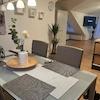 Die Wohnung ist lichtdurchflutet und modern möbliert. Das Wohnzimmer ist mit gemütlichem Sofa und TV ausgestattet; von hier Zugang zum Balkon. Die offene Küche bietet alles, was man täglich benötigt; Essbereich für mindestens 4 Personen.
