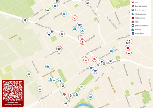 Der begehrte Stadtteil Altlindenau befindet sich westlich des Leipziger Zentrums und wird liebevoll von dem Auwald sowie dem Palmengarten mit seinem angrenzenden Elsterbecken und der Red Bull-Arena umrahmt. Dieser Stadtteil ist baulich geprägt von der Gründerzeit und der produktiven Umnutzung alter Industriebaudenkmäler. Altlindenau ist in ständiger Bewegung und profitiert von einer sehr guten Infrastruktur mit Einkaufsmöglichkeiten, einem Krankenhaus, vielen Schulen und Kitas. Die Innenstadt und der Hauptbahnhof sind in wenigen Minuten mit den öffentlichen Verkehrsmitteln zu erreichen. Mit dem Fahrrad ist es ein "Katzensprung" zum Lindauer Hafen und dem Karl-Heine-Kanal mit den dortigen Sport- und Spielmöglichkeiten.