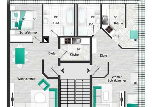 - Ca. 472 m² Wohnfläche, verteilt auf 10 Einheiten (28–53 m²)