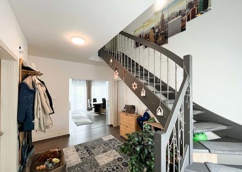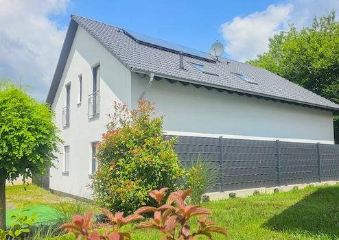 Dieses neuwertige Einfamilienhaus in der idyllischen Ortschaft Netphen / Salchendorf, fertiggestellt im Jahr 2020, bietet auf zwei Etagen eine großzügige Wohnfläche von ca. 208m² und lässt keine Wünsche offen. Das moderne Haus besticht durch seine helle und freundliche Atmosphäre, die durch hochwertige Laminatböden zusätzlich unterstrichen wird. Die großzügige Raumaufteilung umfasst sieben Zimmer, darunter vier komfortable Schlafzimmer, die ausreichend Platz für Familie und Gäste bieten. Der offene Wohnbereich ist ideal für eine große Familie geeignet und das stilvolle Badezimmer rundet das Gesamtbild ab.