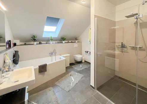 - Badezimmer mit Dusche und Wanne