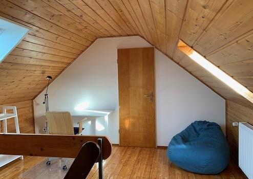 Diese modern und gemütlich eingerichtete Wohnung befindet sich im 2. OG eines gepflegten Zweifamilienhauses und erstreckt sich als Maisonette in das darüberliegende Dachgeschoß.