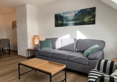 Diese ansprechende, modern möblierte 3-Zimmerwohnung befindet sich im 3. Obergeschoss eines ruhigen Mehrparteienhauses. Der Wohnraum mit bequemem Sitzbereich, Balkon und Esstisch, der auch als Arbeitsplatz genutzt ...