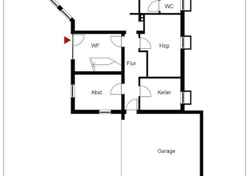 Neben dem Eingangsbereich im Untergeschoss liegt derzeit das Gästezimmer mit angrenzendem Badezimmer und WC. Des Weiteren sind auf dieser Etage der Heizraum, der Natursteinkeller, die Werkstatt und die große Doppelgarage, wo Sie Ihre Fahrzeuge sicher und trocken unterstellen können.