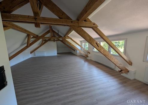 Das Dachgeschoss beherbergt eine offene Studiowohnung mit ca. 100 qm Wohnfläche, Küche und Duschbad - ideal als Loft, Atelier oder großzügige Singlewohnung.