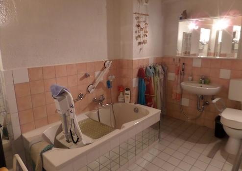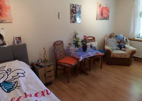 Das Erdgeschoss ist an eine Seniorenwohngemeinschaft als unterstützende Wohnform vermietet. 6 Senioren haben jeweils ein Zimmer und die Gemein-