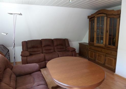 Das Obergeschoss mit ca. 68m² steht zum Zweck des Verkaufs leer, kann somit entweder selbst genutzt oder ebenfalls vermietet werden.