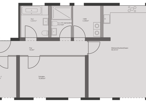 Die Wohnung verfügt über drei geräumige Schlafzimmer, ein elegantes Gäste-Bad mit bodengleicher, großzügiger Dusche sowie ein hochwertig ausgestattetes Hauptbad mit Dusche und Badewanne. Ein praktischer Hauswirtschaftsraum sorgt für zusätzlichen Stauraum und Ordnung im Alltag.