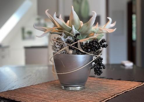 Der Balkon läd zum verweilen ein mit Aussicht in den Garten.