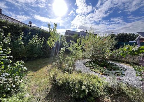 Der vordere Bereich des Grundstücks öffnet sich zu einem angrenzenden Biotop und ermöglicht einen freien, unverbaubaren Blick in die Natur – ein besonderes Merkmal, das Seltenheitswert hat.