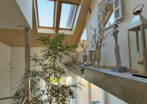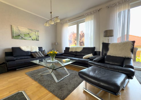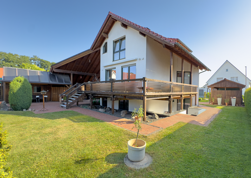 Dieses außergewöhnliche Architektenhaus in ruhiger Stadtrandlage von Minden bietet auf ca. 230 m² Wohnfläche ein lichtdurchflutetes und flexibles Raumkonzept. Der großzügige Wohnbereich mit Galerie, offener Küche und Zugang zur sonnigen Süd-West-Terrasse schafft ein einladendes Ambiente. Neben bis zu drei Schlafbereichen und einem stilvollen Badezimmer überzeugt das Haus mit einer separaten Einliegerwohnung im Souterrain. Hochwertige Ausstattungsdetails wie Specksteinofen, Fußbodenheizung, BUS-System und zentrale Staubsaugeranlage runden das Angebot ab. Auf dem ca. 659 m² großen Grundstück erwarten Sie ein liebevoll gestalteter Garten sowie sechs Stellplätze. Ein tolles Zuhause für Familien, Mehrgenerationen oder die Verbindung von Wohnen und Arbeiten.
