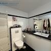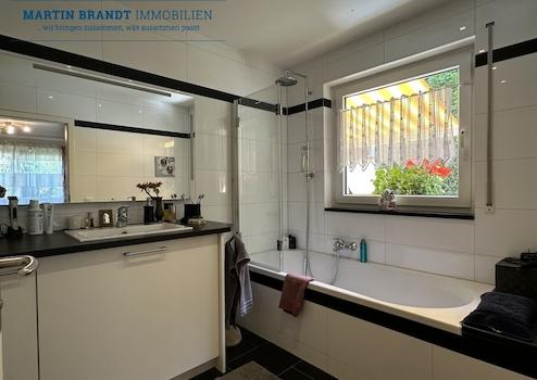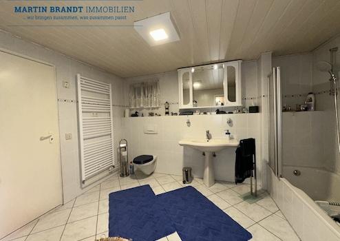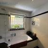 - Badezimmer mit Fenster, Dusche und Wanne, WC, raumhoch gefliest