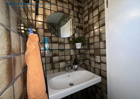 Das Herzstück des Hauses bildet der großzügige Wohnbereich mit Kamin, der zu entspannten Stunden einlädt. Die Küche ist mit einer praktischen Einbauküche ausgestattet, die Hobbyköche begeistern wird. Der Boden im Haus ist mit stilvollen Fliesen und Laminat versehen, die der Ausstattung eine zeitlose Note verleihen. Alle Decken sind mit Holz in weiss getäfelt.