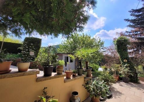Der weitläufige Garten ist nicht nur ein Ort zum Entspannen, sondern auch ein echtes Naturparadies. Nebeneinem Gartenhaus und einem Gewächshaus finden sich hier verschiedene Obstbäume-darunter Kirsche, Feige, Birne, Apfel, Quitte - sowie ein imposanter Walnussbau. Kräuter wie Minze und Zitronenmelisse verleihen dem Garten zusätzlich mediterranes Flair.