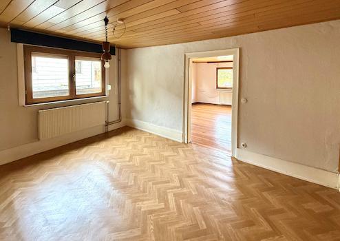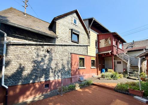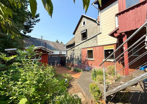 Das ehem. Bauernhaus wurde um ca. 1920 auf einem rd. 425 m² großen Grundstück errichtet und später um weiteren Wohnraum ergänzt. Heute bietet es zwei potenzielle Wohneinheiten, die aktuell miteinander verbunden sind, aber mit entsprechenden Umbaumaßnahmen separat nutzbar wären - Ideal für einen Mehgenerationenhaushalt oder zum Wohnen und/oder Vermieten. Der rechte, ursprüngliche Hausteil befindet sich in renovierungsbedürftigem Zustand und stellt einen Wohn-/Essbereich, eine Küche, ein Bad sowie ein Schlafzimmer zur Verfügung. Der linke Teil ist gepflegt und sofort beziehbar. Diese Einheit besitzt 2 Schlafzimmer, ein Duschbad, eine Ankleide, einen geräumigen Wohn-/Essbereich mit angrenzendem Wintergarten, eine Küche samt EBK sowie zwei Abstellräume. Das pflegeleichte Grundstück bietet eine große Terrasse im hinteren Bereich sowie ein Gartenhaus. Zwei separate Stromzähler sind vorhanden. Der linke Teil ist über das gemeinsame Treppenhaus im Obergeschoss oder über den Wintergarten zugänglich. Das Haus ist teilunterkellert - im Ursprungsteil befindet sich ein Bruchsteinkeller mit drei Nutzräumen. Als Parkmöglichkeit stehen zwei Garagen und 1-2 Stellplätze vor dem Objekt bereit.