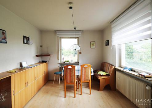 Das Gebäude kann sowohl als Einfamilienhaus, als auch als Zweifamilienhaus genutzt werden. Bestechend ist der Blick in den großen Garten.
