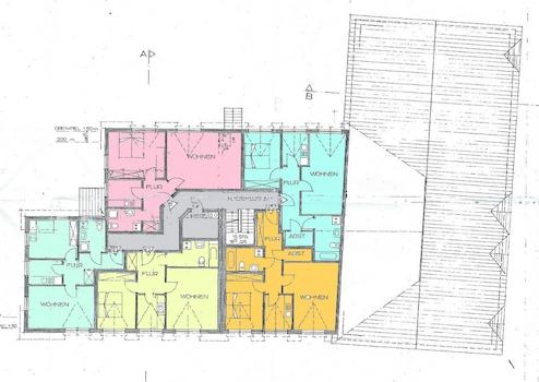 - Dachgeschosswohnungen: Wohnflächen zwischen ca. 52 m² und 57 m²