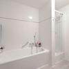 - hell gefliestes Badezimmer mit Dusche und Badewanne