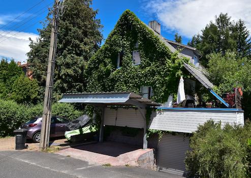 sehr steile Zufahrt, für Auto nicht nutzbar, elektrisches Rolltor