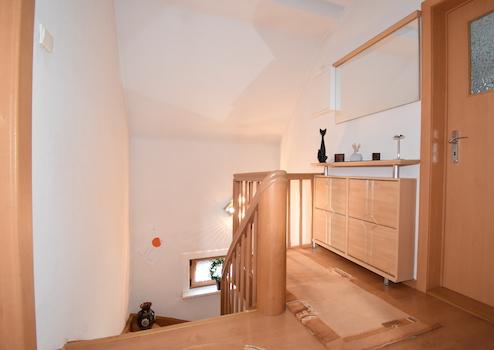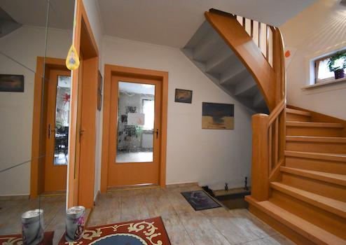 Zugang zum Dachgeschoss = massive Holztreppe mit einseitigem Handlauf