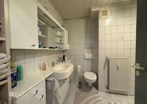 Ein funktional geschnittenes Badezimmer ergänzt den praktischen Grundriss und bietet genügend Raum für alle notwendigen Einbauten, was eine unkomplizierte Bewirtschaftung erleichtert.