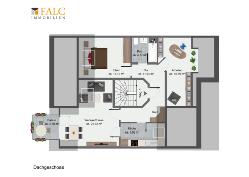 Mit zwei großzügigen Schlafzimmern, einem hellen Wohn- und Essbereich sowie einem attraktiven Südbalkon bietet diese Dachgeschosswohnung beste Voraussetzungen für eine stabile und langfristige Vermietbarkeit.