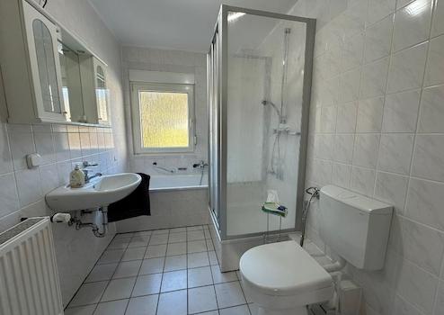 Erdgeschoss: Wohnküche mit Terrassenzugang, 2 Zimmer, modernisiertes Tageslichtbad mit Dusche und Wanne, Diele