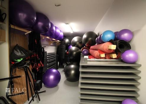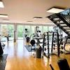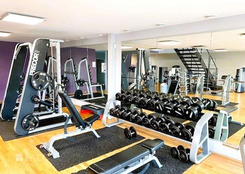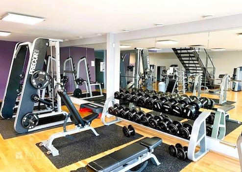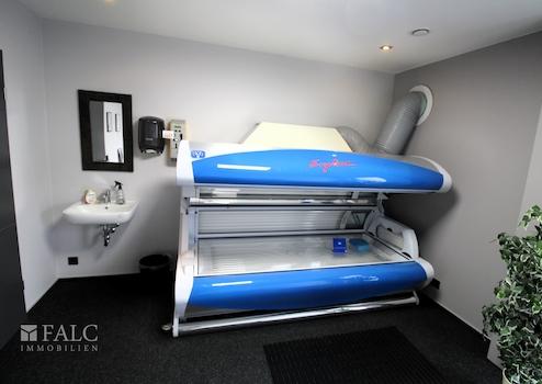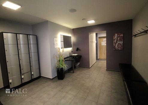 Fitness- & Wellnessbereich (330 m²): Fitnessstudio, Sauna, Massageraum, Umkleiden. Aktuell 390 zahlende Mitglieder.
